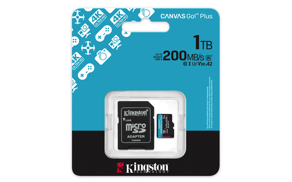 Kingston Canvas Go! Plus - Pametová karta flash (adaptér microSDXC na SD zahrnuto) - 1 TB - A2 / Video Class V30 / UHS-I U3 / Class10 - microSDXC UHS-IPametová karta flash (adaptér microSDXC na SD zahrnuto) - 1 TB - A2 / Video Class V30 / UHS-I U3 / Class10 - microSDXC UHS-I