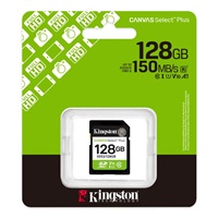 Kingston Canvas Select Plus - Pametová karta flash - 128 GB - Video Class V10 / UHS-I U1 / Class10 - SDXC UHS-IPametová karta flash - 128 GB - Video Class V10 / UHS-I U1 / Class10 - SDXC UHS-I