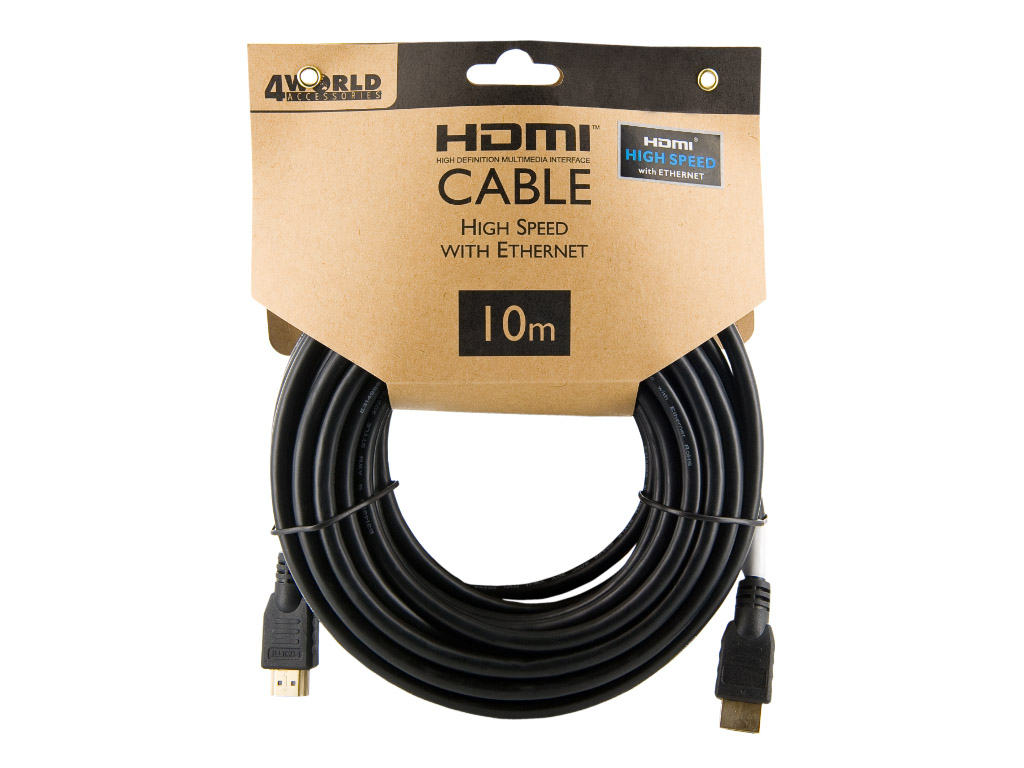4World Kabel HDMI 1.4 High Speed Ethernet 10m Black - HDMI A - MDMI A 19/19 M/M - verze HDMI 1.4 a,b - pozlacené konektory - 30 AWG - délka 10 m - barva černá