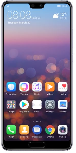 Predná kamera tiež nezaostáva s 24Mpx a pokročilou technológiou portrétovej fotografie. Všetko beží na procesore Kirin 970 s umelou inteligenciou, ktorá je previazaná s celým systémom a vylepšuje tak chod zariadenia, nastavenie fototaparátu, optimalizáciu napájania a spotrebu energie. Energie má naozaj na rozdávanie s veľkokapacitnou batériou 3400mAh a rýchlym nabíjaním SuperCharge™ (5V;4,5A). Konfigurácia telefónu je 4 GB operačnej + 64 GB uživateľskej pamäti. Huawei P20 je vybavený systémom Dolby Atmos pre unikátny zážitok z priestorového zvuku. Konektivita je možná cez rozhranie USB-C alebo cez duálny Bluetooth. Bezpečnost zabezpečuje čítačka odtlačkov prstov a tiež pokročilá technológia odomykania tvárou. Presne ako u modelu P20 Pro a Mate 10 Pro je možné pripojenie k obrazovke cez Easy projection mód a sprístupniť tak počítačové rozhranie.