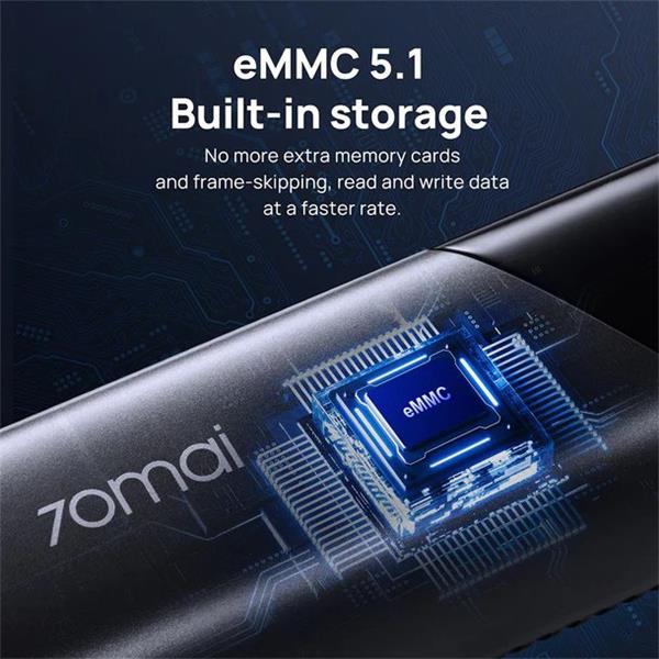 S vestavěným úložištěm eMMC 5.1 již nepotřebujete samostatnou paměťovou kartu. Maximální rychlost čtení/zápisu M500 230 MB/s a 150 MB/s vám také pomůže vyhnout se běžným problémům, jako je přeskakování snímků a chyby paměťové karty.
