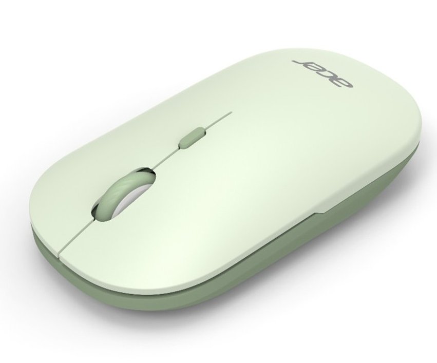 Acer Wireless Mouse AMR130 Green - Dual mode 2.4GHz + BT 5.2, 4 tlačítka, 800/1200/1600 dpi, USB Polling rate 125 Hz, sensor speed 30 IPS, životnost 5 mil. kliknutí, 110x62x32 mm, hmotnost 90g ± 5 g bez AA baterie, 1x AA baterie, pro WIN 10 a vyšší / MAC OS 10.x a vyšší, světle zelená