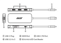 ACER Dokovací stanice 7IN1 TYPE C DONGLE: 1x HDMI, 1x DP, 1x USB-C,2x USB3.2, 1x RJ-45,1x 3.5mm audio port HP.DSCAB.018