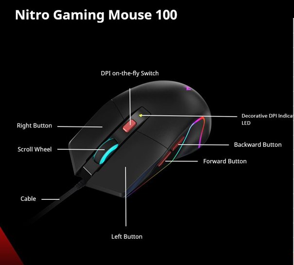 ACER NITRO MOUSE NMW100 BLACK, UP TO 7200 DPI, WIRED, 6 BUTTONS, RETAIL PACK