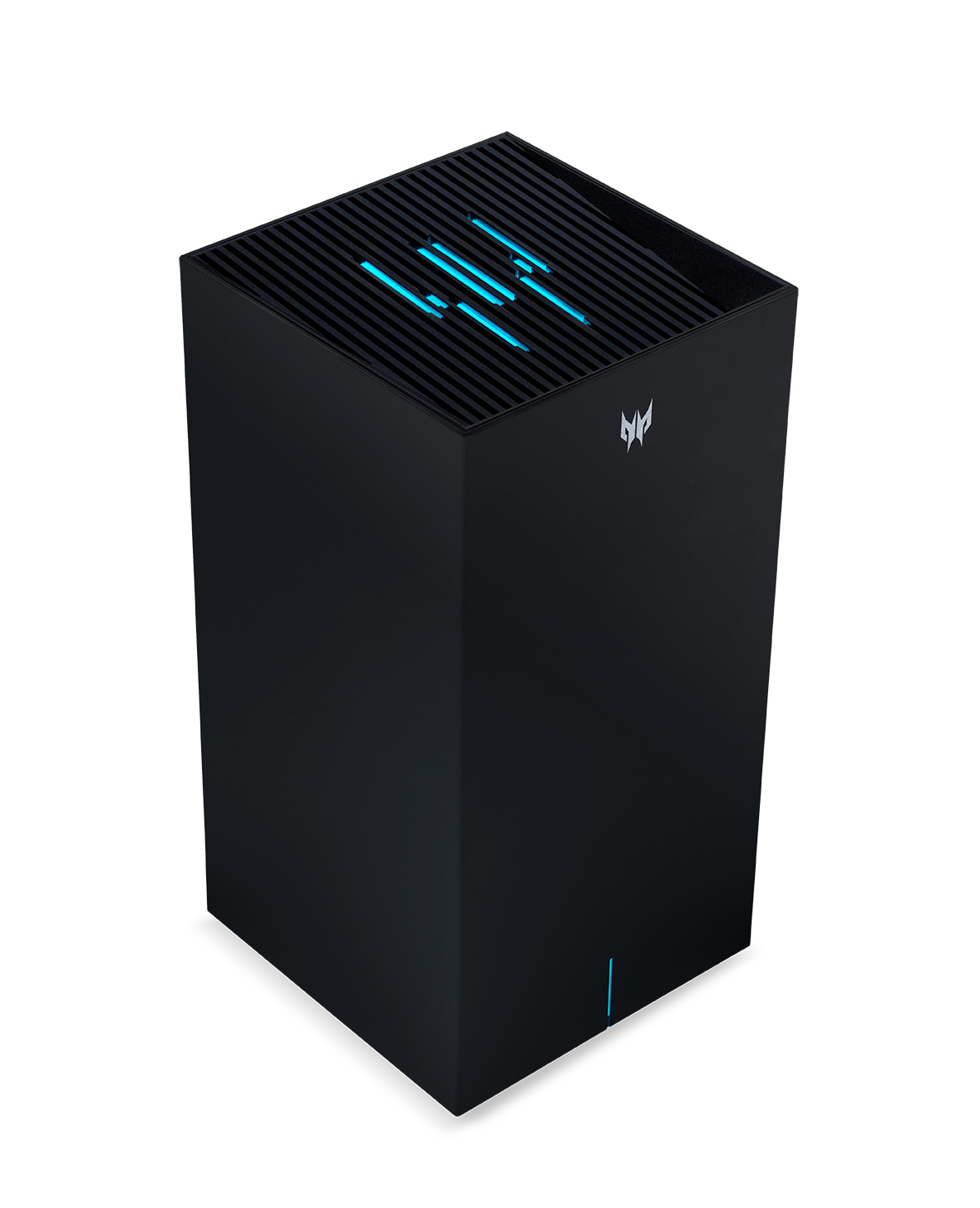 Acer Predator Connect X7 5G CPE - Wifi 7 & 5G router, black, 802.11 b/g/n/ac/ax/be 2x2 Tri-band 2.4 GHz / 5 GHz / 6 GHz, Wifi Mesh support, 1x WAN 2.5Gb/s, 2x LAN 1GB/s, nanoSIM clot, USB Type-C 2.0 port, WPS, Power button, Reset, Hybrid QoS compatible with Intel® Killer™, Prioritization Engine, Trend Micro Home Network Security, Predator Connect App, CPU Qualcomm X62 Quadcore 1.5GHz, RAM 1GB DDR4, storage 512 MB flash, interní antény, 109x109x212 mm, 950g
