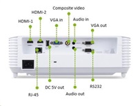 • ACER Projektor S1387n, ShortThrow, WXGA (1280x800), 4000 ANSI, 20 000:1, VGA, HDMI, RJ45, repro 1x16W, 3.1K MR.JYX11.001