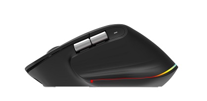 Acer Smart Fit Vertical Mouse - Black, Wireless RF 2.4GHz + BT (2x) + USB, vertikální (pro praváky), citlivost 8000 DPI (5 stupňů 1600-8000), 10 tlačítek, RGB podsvícení (11 módů), dosah 10 m, USB-C nabíjení, Li-ion baterie 850mAh, výdrž až 120 hodin, na