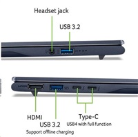 Swift 14 AI (SF14-51-514G) - Copilot+ PC - Windows 11 Home - Intel® Evo™ - Intel® Core™ Ultra 5 processor 226V - NPU Intel® AI Boost up to 40 TOPS - 16 GB LPDDR5X Memory On Board + N/A - 1024GB PCIe NVMe SSD PM4 + N/A - 14" WQ2.8K 2880x1800 16:10 OLED Glare 90Hz Adobe100%/DCI-P3 100% 100000:1 400nits 1ms - Intel® Arc™ Graphics 130V - WIFI 7 Intel 802.11be 2x2 Killer 1750i + BT 5.4 LE Audio - QHD IR USB TNR camera with 2Mic. and camera shutter - Backlight KB - Fingerprint on Power button - 2x USB Type-C™ port supporting: USB4® 40Gbps / DisplayPort over USB-C / Thunderbolt™ 4 / USB charging 5 V; 3 A / DC-in port 20 V; 65 W - 2x USB 3.2 Gen1 - HDMI 2.1 - Corning® Gorilla® Glass Touchpad - Copilot Key (AI) - Acer Sense - 65Wh Li-ion battery - 65W USB Type-C AC Adapter PCR50%_TCO9.0 - MIL-STD 810H certified - Steam Blue Full Aluminium