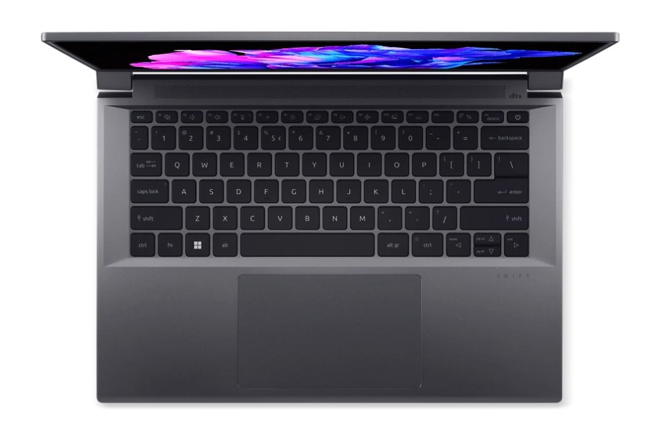 Swift X 14 (SFX14-72G-78GH) - Windows 11 Professional 64bit - Intel® Core™ Ultra 7 processor 155H - 32 GB LPDDR5X Memory On Board + N/A - 1024GB PCIe NVMe SED SSD PMP4 + N/A - Micro SD card reader - 14,5" WQXGA+ 2880x1800 16:10 OLED Glare 120Hz DCI-P3 100% /Adobe100% 1000000:1 400nits Support HDR True black 500, TÜV Low blue/Eyesafe Display certified - NVIDIA® GeForce RTX™ 4060 8G-GDDR6 (2C*512*16*4) 16Gbps - Wifi 6E Intel 802.11ax 2x2 1675i CNVi + BT 5.3 & LE Audio - FHD USB TNR Camera with 2 Mic. - Backlight KB - Fingerprint on Power Button - 2x USB Type-C™ port supporting: USB4® 40Gbps / DisplayPort over USB-C / Thunderbolt™ 4 / USB charging 5 V; 3 A / DC-in port 20 V; 100 W - 1x USB 3.2 Gen2 - 1x USB 3.2 Gen1 - HDMI 2.1 - Ocean Glass Touchpad - Copilot Key - Acer Sense - 76Wh Li-ion battery - 100W Type-C AC adapter (PCR50%_TCO9.0) - Steel Gray Full Aluminium