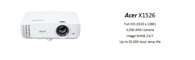 Acer X1526 DLP 3D /FullHD 1920x1080 /4000 ANSI /13000:1/2xHDMI/repro 1x3W, 2,4kg MR.JX911.001