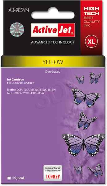 ActiveJet ink cartr. Brother LC-985Y - 19 ml - 100% NEW AB-985YN (AB-985Y)