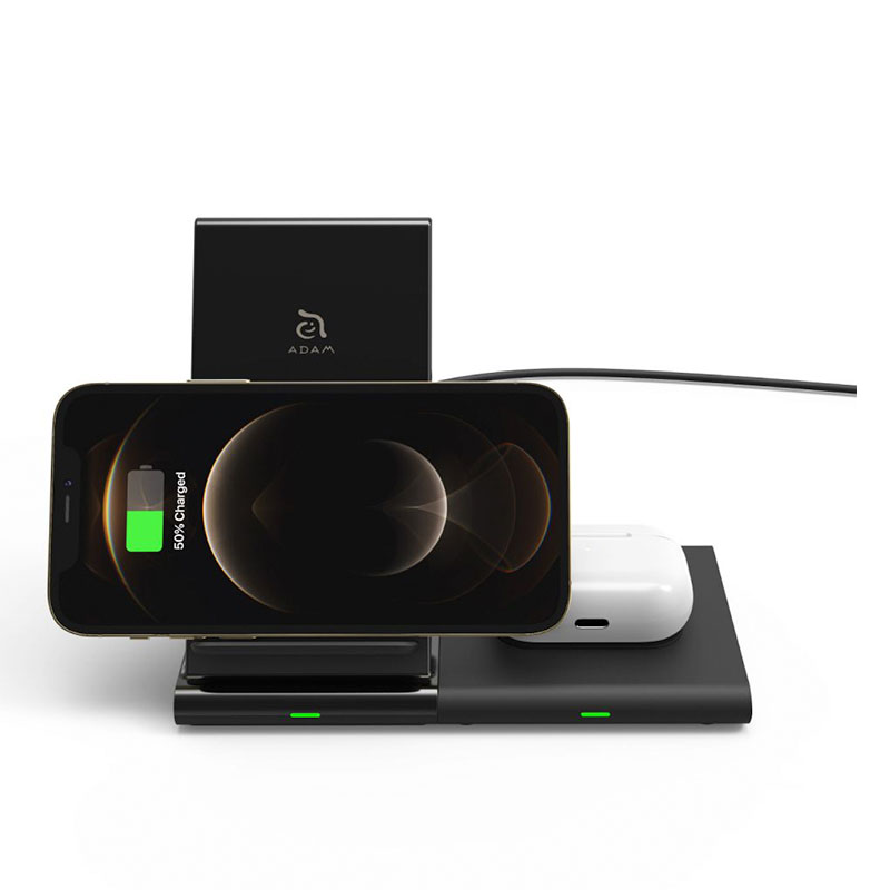 Adam Elements Omnia Q2x 2-in-1 Wireless Charging Station - Black AEAPAADQ2XOGBK