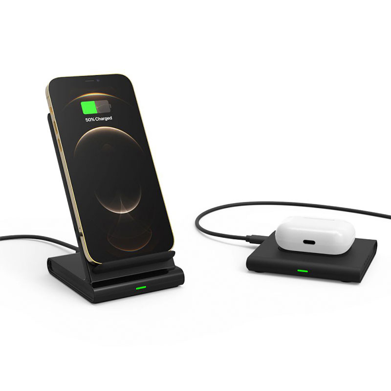 Bezdrôtová nabíjacia stanica 2-v-1 - štýlová, efektívna a super ľahko prenosná - udržuje vašu pracovňu čistú a organizovanú - nabíjací stojan a nabíjacia podložka sa dajú oddeliť a používať samostatne - výkon samostatného nabíjania 15W + 15W (stojan + ...