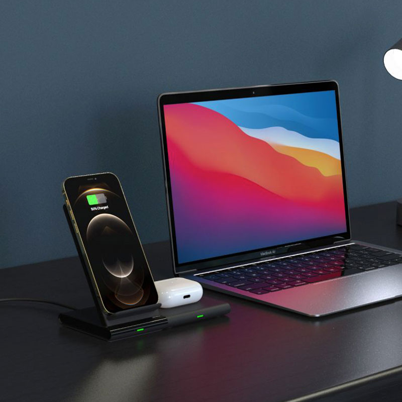 Bezdrôtová nabíjacia stanica 2-v-1 - štýlová, efektívna a super ľahko prenosná - udržuje vašu pracovňu čistú a organizovanú - nabíjací stojan a nabíjacia podložka sa dajú oddeliť a používať samostatne - výkon samostatného nabíjania 15W + 15W (stojan + podložka) - výkon kombinovaného nabíjania 15W + 5W (stojan + podložka) - možné nabíjanie iPhone vo vertikálnej alebo horizontálnej polohe - zelený / modrý LED indikátor - zelené svetielko signalizuje nabíjanie - modré svetielko signalizuje detekciu cudzích predmetov - silikónové prvky proti zošmyknutiu - detekcia cudzích predmetov - ochrana proti prebíjaniu a prehriatiu Balenie obsahuje: - bezdrôtový nabíjací stojan - bezdrôtová nabíjacia podložka - nabíjací kábel USB-C (1,2 m) Rozmery: 124 x 157 x 85 mm Hmotnosť: 206 g