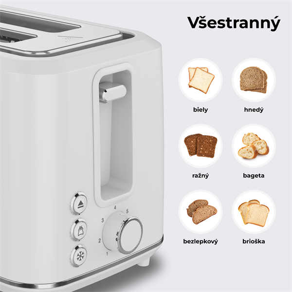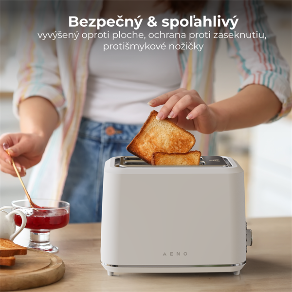 AENO 2-plátkový hriankovač TS1, 1000W, 7 stupnov opekania, extra výsun, biely ATS0001W