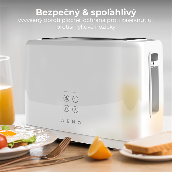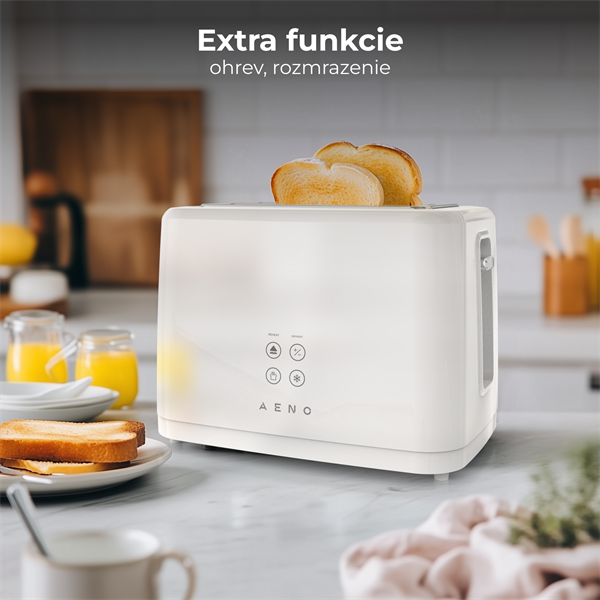 Elektrický hriankovač AENO TS2, príkon 1000 W, hmotnosť: 1,2 kg, protišmykové nožičky, 7 stupňov nastavenia intenzity opečenia, rozmrazovanie Dotykové ovládanie a digitálny časovač! Inovatívne funkcie pre dokonalé toastovanie Okrem opekania toastov ten...