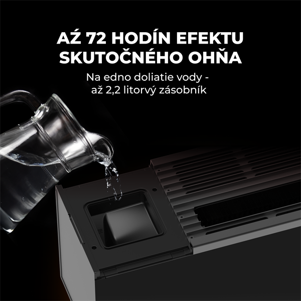 Veľká nádrž na vodu s objemom 2 litre pre až 72 hodín nepretržitého efektu SKUTOČNÉHO OHŇA s VODOU