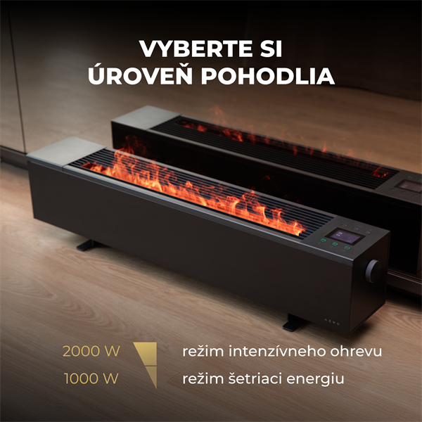• AENO FH2S Premium SPACE FIRE HEATER,Čierny, LED, WI-FI, max 2000W, 1000x242cm, efekt ohńa AFH0002S