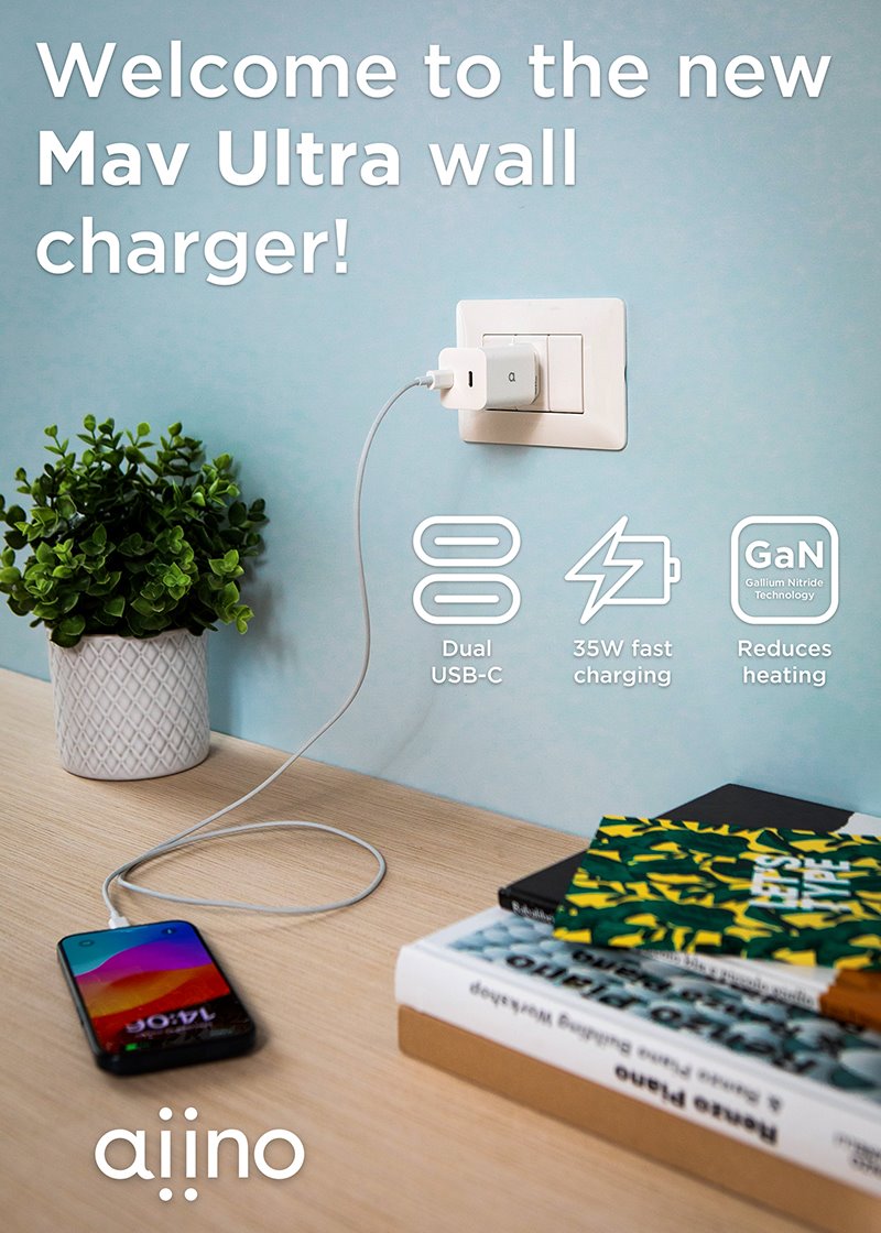 Aiino Mav Ultra 35W GaN wall charger with two USB-C ports AIWCH35W