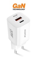 Chytrá GaN síťová nabíječka ALIGATOR Power Delivery 33W, USB-C + USB-A Technické parametry: Vstup: AC 100-240V Výstup: USB-C: DC 5V-3A, 9V-3A, 12V-2.5A, 15V-2A, 20V-1.5A USB-A: DC 5V-3A, 9V-2A, 12V-1.5A USB-C + USB-A: DC 5V-3A Power Delivery 33W Ochrana proti zkratu a přetížení Barva: bílá