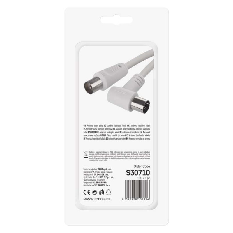• Anténny koaxiálny kábel tienený 7,5m – uhlová vidlica 8592920107836