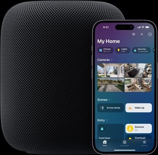 Máme veľkú radosť, že vám môžeme ponúknuť úplne nový inteligentný reproduktor Apple HomePod 2. generácie, s ktorým môžete ľahko ovládať celú smart domácnosť založenú na platforme Apple HomeKit. A samozrejme počúvať obľúbenú hudbu alebo komunikovať naprieč celou domácnosťou. Medzi kľúčové novinky patrí lepší zvuk aj jednoduchšie prepojenie s iPhonom. Tiež využijete detekciu zvuku alarmov dymu či oxidu uhoľnatého. A na automatizáciu inteligentnej domácnosti sa hodí aj meranie teploty či vlhkosti vzduchu.