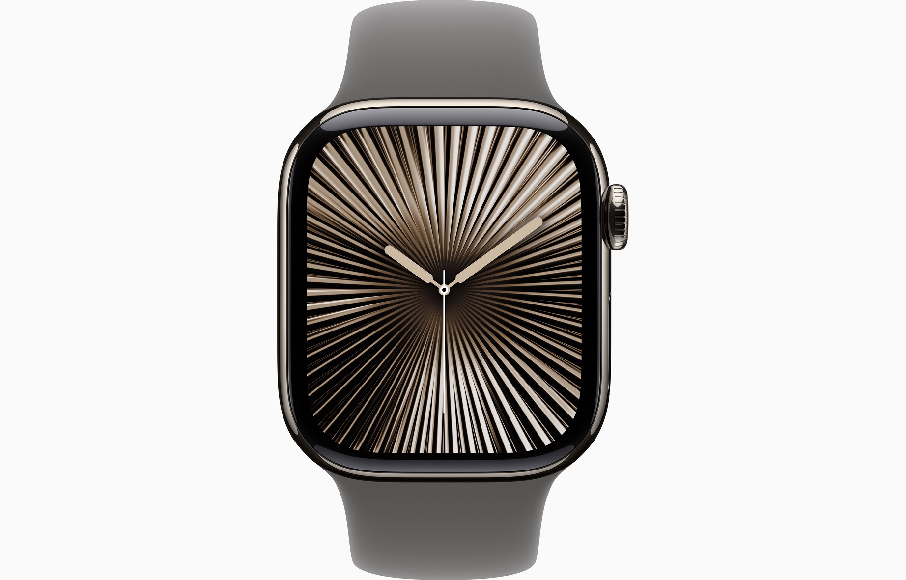 Apple Watch Series 10 GPS + Cellular 42mm Natural Titanium Case with Stone Grey Sport Band - M/L MWXE3QC/A