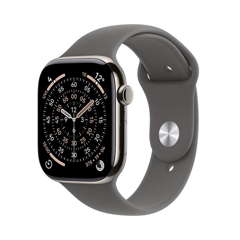 • Apple Watch Series 11 GPS + Cellular 42mm Natural Titanium Case with Stone Grey Sport Band - M/L MF8N4WF/A