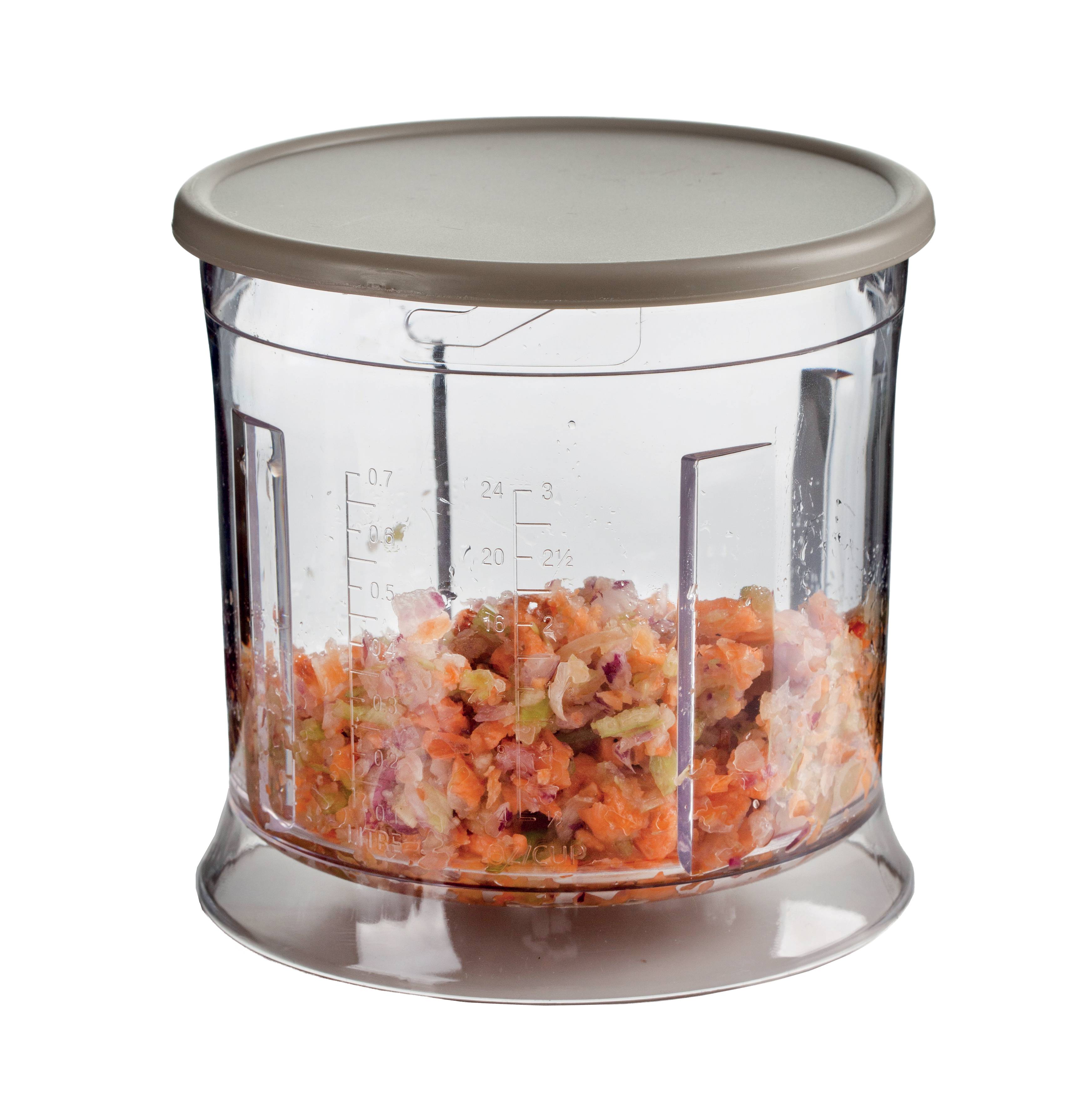 Praktická protišmyková podložka pod základňu sekáčika zaisťuje stabilitu pri práci a minimalizuje vibrácie. Tú istú podložku možno ľahko otočiť a použiť ako viečko na uzavretie nádoby, čo umožňuje uchovať čerstvé ingrediencie a uľahčuje skladovanie pripravených pokrmov.