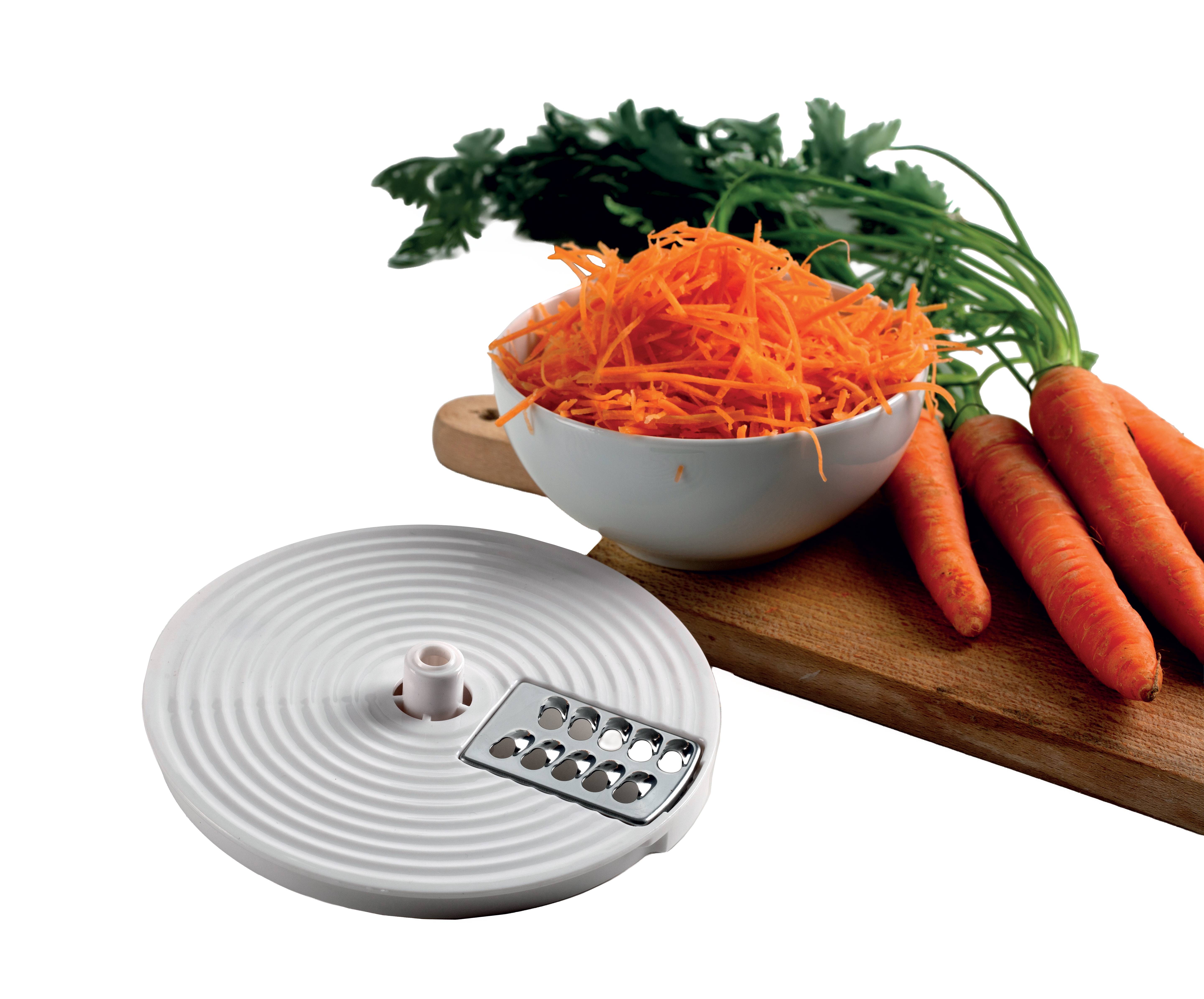 Multifunkčná nádoba s využiteľným objemom 1,2 l 3 vymeniteľné disky na krájanie a strúhanie Univerzálny nôž na sekanie a plastový hnetací hák Emulgačný nadstavec Vtláčadlo 2 rýchlosti a pulzný spínač Príkon: 1 000 W Farba: modrá