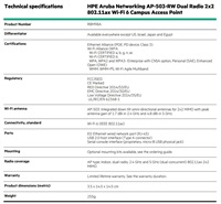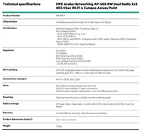 Model: Aruba AP-503 Bezdrátový standard: *802.11b *802.11a/g/n *802.11ac *802.11ax Bezdrátový datový přenos: 1.2 Gbps Typ antény: Všesměrová Konektory: *2x RJ-45 (10/100/1000BASE-T) *1x USB 2.0 PoE: Ano Napájení: 10.9 W Rozměry: 145 x 35 x 145 mm (ŠxVx...