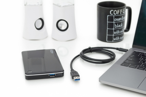 For connection of external USB devices (with C socket, e. g. PC, Tablet or Smartphone) to the USB Host (e. g. PC, Notebook). Datatransferrate up to 10 Gbps (Superspeed+).