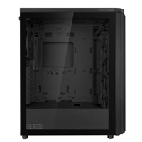 Prevedenie skrine:Midi Tower; Farba skrine:Čierna; Počet pozícií 3.5" (HDD):2; Počet interných pozícií 2.5":2; Vybavenie PC skrinky:Predný Audio panel, Predný USB panel, Priehľadná bočnice