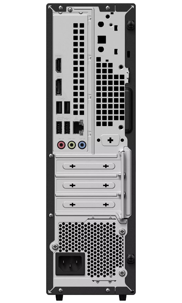 Počítač disponuje jednou 3,5" pozicí pro disk, 2× SATA 6.0 Gb/s porty, PCIe® 4.0 x16 slotem (provoz x8), M.2 konektorem pro Wi-Fi a 2× M.2 2280 konektory pro úložiště. Paměť lze rozšířit pomocí 2× DDR5 SO-DIMM slotů až na 64 GB.