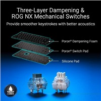 ROG Azoth Extreme je prispôsobiteľná 75% herná klávesnica s prémiovým šasím z hliníkovej zliatiny a kovovým rámom. Vyznačuje sa rýchlosťou hlásenia 8000 Hz s ROG Polling Rate Booster a viac než 1600 hodín výdrže batérie v bezdrôtovom režime ROG SpeedNova 2,4 GHz. Vylepšený OLED dotykový displej a trojpólový knoflík umožňujú sledovanie systému a rýchle nastavenie. Polohovacia doska z uhlíkovej ocele zabezpečuje ostrý zvuk pri písaní, zatiaľ čo tri tlmiace vrstvy absorbujú vibrácie. Nastaviteľný držiak tesnenia s pádly spínača ponúka dve možnosti písania.