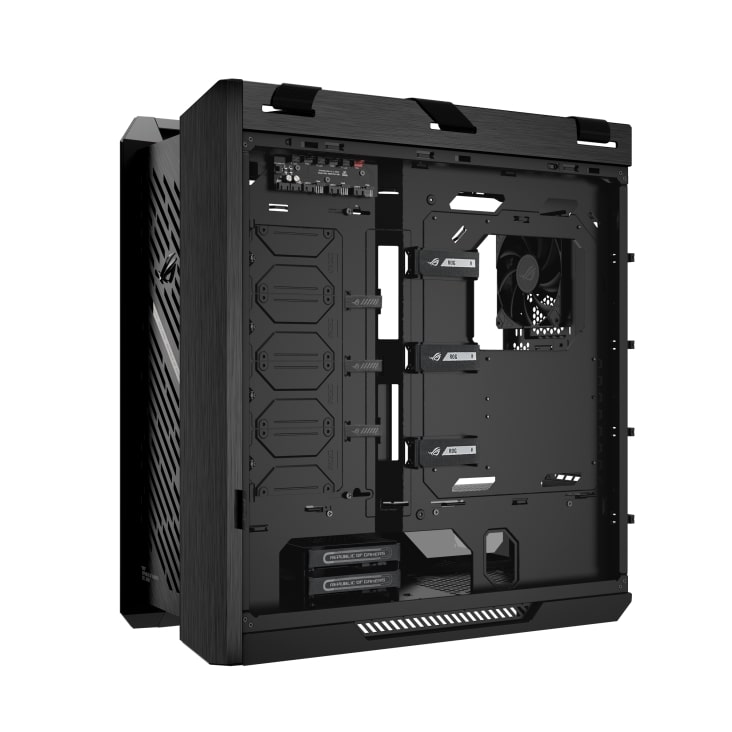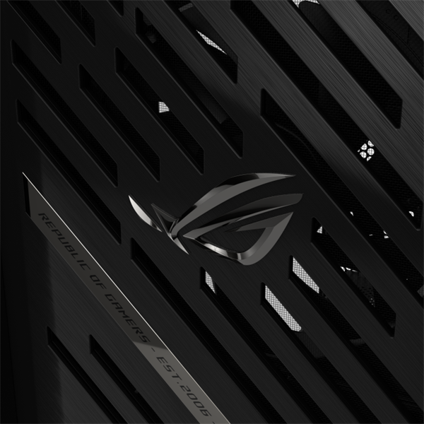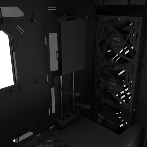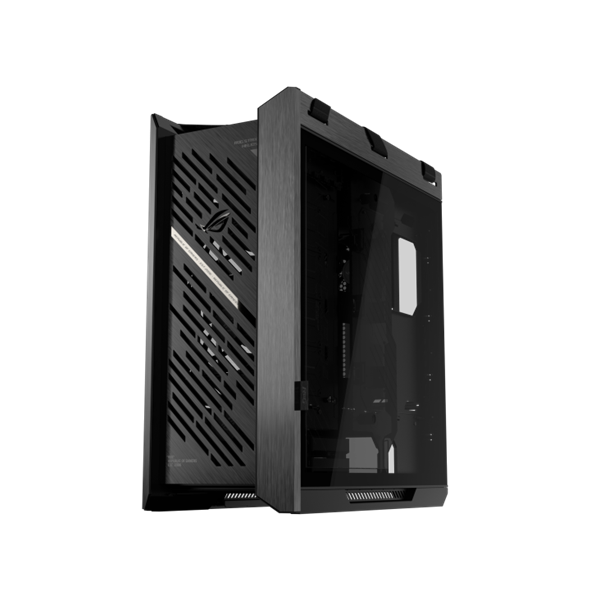 Herná skriňa ROG Strix Helios II EATX v prevedení mid-tower s dvojitými bočnými panelmi z tvrdeného skla, podporou grafických kariet až do dĺžky 450 mm, hliníkovým rámom a predným panelom, výstuhami grafickej karty a podporou chladiča 420 mm