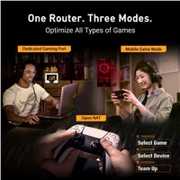 • Jeden router. Všetky typy hier – Obsahuje uprednostňovanie mobilného herného režimu, vyhradený herný port pre špičkový výkon a zjednodušené Open NAT pre jednoduché nastavenie pre viacerých hráčov.