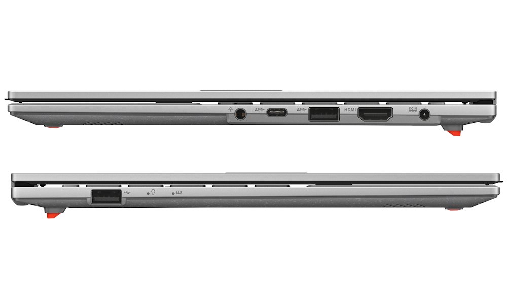 Notebook disponuje kompletní sadou portů včetně 1× USB 2.0, 1× USB 3.2 Gen1 a 1× USB-C 3.2 Gen1. K dispozici je také HDMI 1.4 výstup a 3,5mm combo audio jack. Bezdrátové připojení zajišťuje Wi-Fi 6 (802.11ax) s dual band podporou a Bluetooth® 5.2.