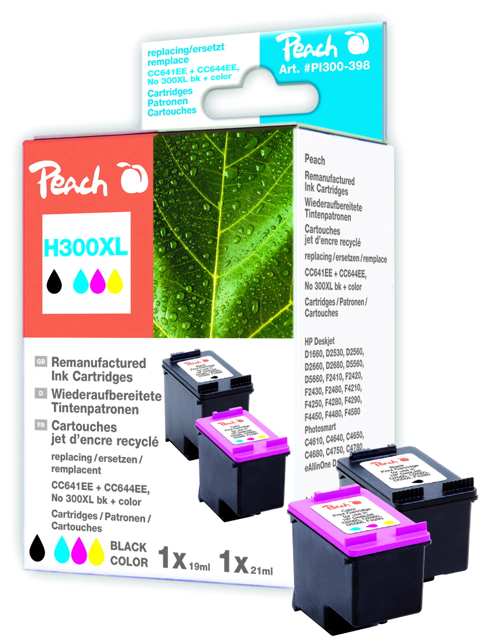 Atrament Peach CC641EE, CC644EE No.300XL Combi Pack kompatibilní černý + barevný PI300-398 pro HP DJ D1600 series 316257