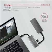 Vysokorychlostní USB-C 3.2 Gen 2 hub AXAGON HMC-4G2 SPEEDSTER 4 rozšíří Váš notebook, počítač nebo telefon o čtveřici portů. Přes oboustranný USB-C konektor snadno a rychle připojíte k počítači až čtyři USB zařízení současně. USB rozbočovač nabízí celk...