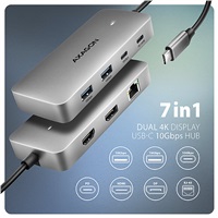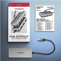 AXAGON HMC-CUB83X2, USB 10Gbps hub, 2x USB-A, USB-C, HDMI & DP 4k/144Hz, RJ-45 GLAN, PD 100W, kabel USB-C 15cm