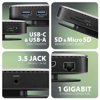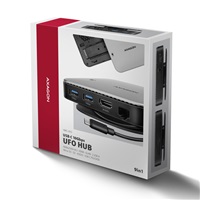 AXAGON HMC-UFO USB-C 10Gbps UFO hub rozšíri váš notebook, počítač alebo tablet o osem portov a externý box pre M.2 disk. Pripojte svoj notebook k dokovacej stanici 9v1 pomocou kábla USB-C s dĺžkou 65 cm. V okamihu máte k dispozícii integrovaný slot pre disk NVMe alebo SATA M.2, čítačku kariet SD a microSD a konektory na pripojenie monitora, zariadenia USB, slúchadiel, sieťového kábla a napájania Power Delivery. Kompatibilita s Thunderbolt 3/4 vám tiež poskytuje jednoduchú a kompaktnú dokovaciu stanicu pre notebooky, ako je Apple MacBook Air alebo Pro.
