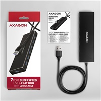 AXAGON HUE-F7A, 7x USB 3.2 Gen 1 ALU FLAT CHARGING hub, micro USB napájecí konektor, kabel USB-A 1m
