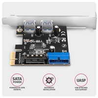 AXAGON PCEU-232RS, PCIe radič, 2+2x USB 5Gbps port, SATA napájanie, Renesas PD720201, SP & LP