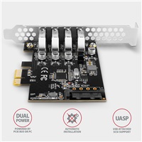 AXAGON PCEU-43RS, PCIe řadič, 4x USB 3.2 Gen 1 port, 5 Gbps, napájení z PCIe nebo SATA, SP & LP