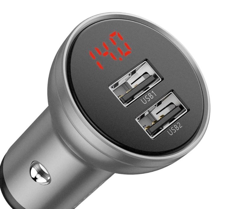 Baseus Digital Display USB nabíječka se dvěma USB porty a vysokým výkonem až 24W Navíc na přehledném displeji zjistíte stav nabití vašeho akumulátoru ve voze. Nejen, že si nabijete až dva telefony současně, ale také včas zjistíte, že je autobaterie sla...