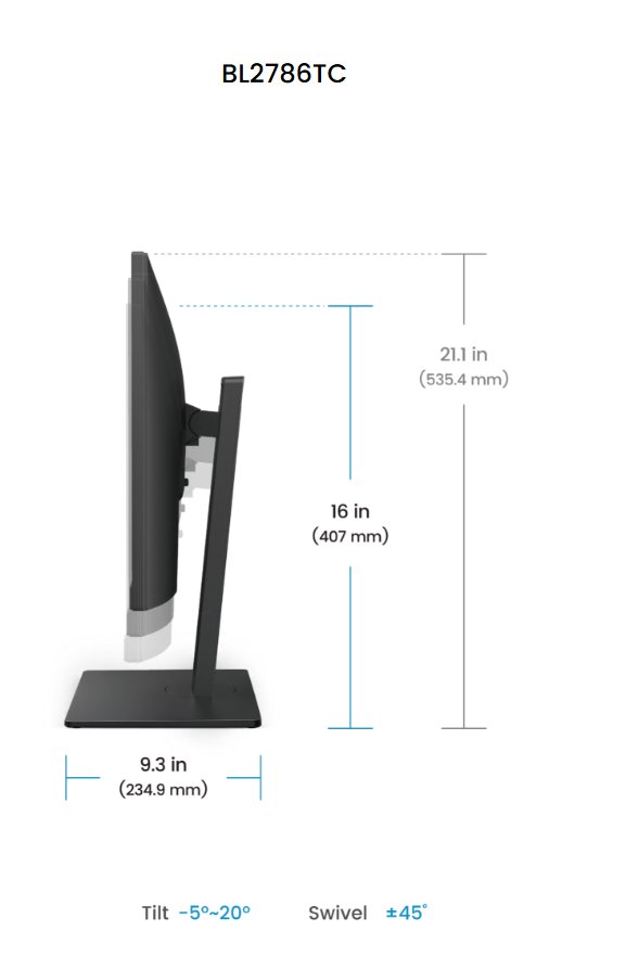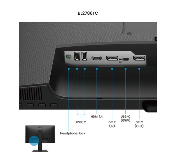 BenQ BL2786TC; LED monitor s úhlopříčkou 27" disponující Full HD rozlišením 1920 × 1080 obrazových bodů s poměrem stran 16 : 9 . Nabízí jas 250 cd/m 2 , kontrastní poměr 1300 : 1...