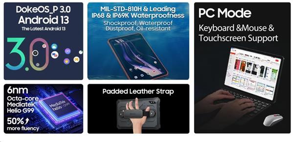 Tablet Blackview Active 8 sa ujme role pomocníka, ktorého vďaka kompaktným rozmerom prenesiete v rukách alebo napríklad v menšej taške. Dovolí vám sledovať dianie na internete, nahrávať videá a robiť fotografie, ale aj pracovať s aplikáciami alebo hrať hry. Tablet je vybavený 10,36" displejom, ktorý je vhodný na použitie na pracovné aj študijné účely. Obľúbili si ho aj priaznivci hier i milovníci filmov. Všetky operácie a funkcie spravuje 8-jadrový procesor T616. Veľkosť operačnej pamäte je 6 GB. Potrebné množstvo energie poskytuje batéria s kapacitou 22000 mAh. Iste vás zaujme svojou konektorovou výbavou USB-C. Ponúkaný tablet zvládne náročné situácie bežného života vďaka svojej vodoodolnosti. Jeho ochrana je označená stupňom krytia IP68 a IP69K.