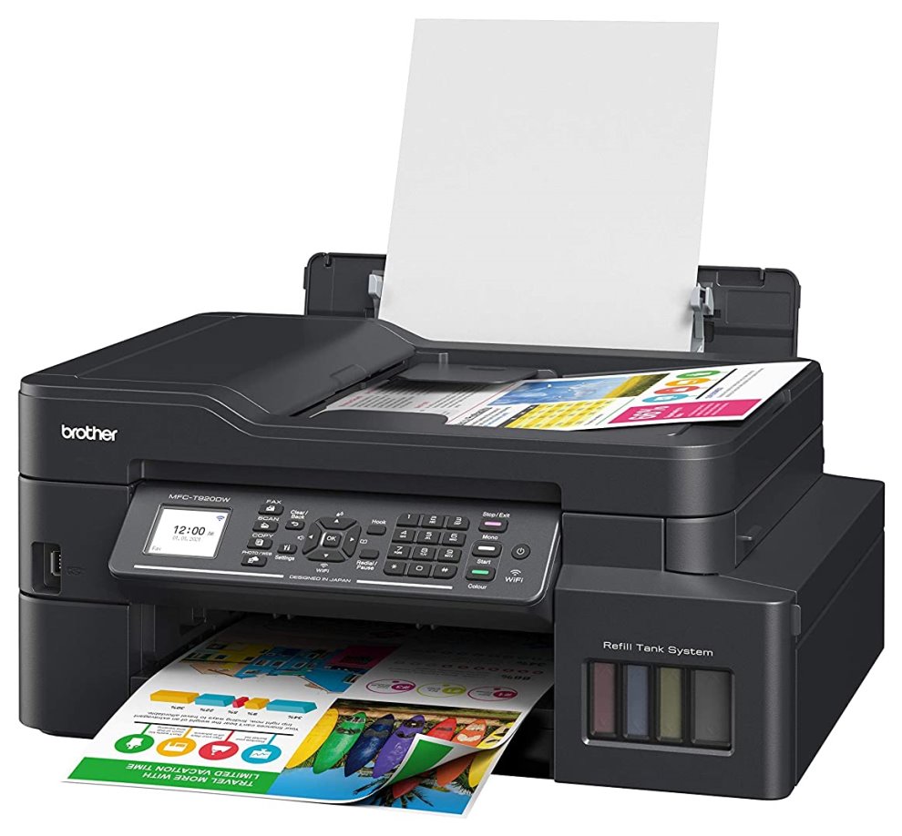Multifunkční zařízení MFC-T920DW má všestranné použití a pyšní se funkcemi tisku, kopírování, skenování a faxování. Kromě toho, že je model MFC-T920DW nabitý funkcemi, vám také pomůže ušetřit peníze – jeho jednoduchý systém doplňování inkoustu umožňuje v