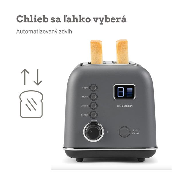 • BUYDEEM Automatický kovový hriankovač na 2 plátky, model DT730E, farba atramentová sivá, EU DT730E-IG/EU